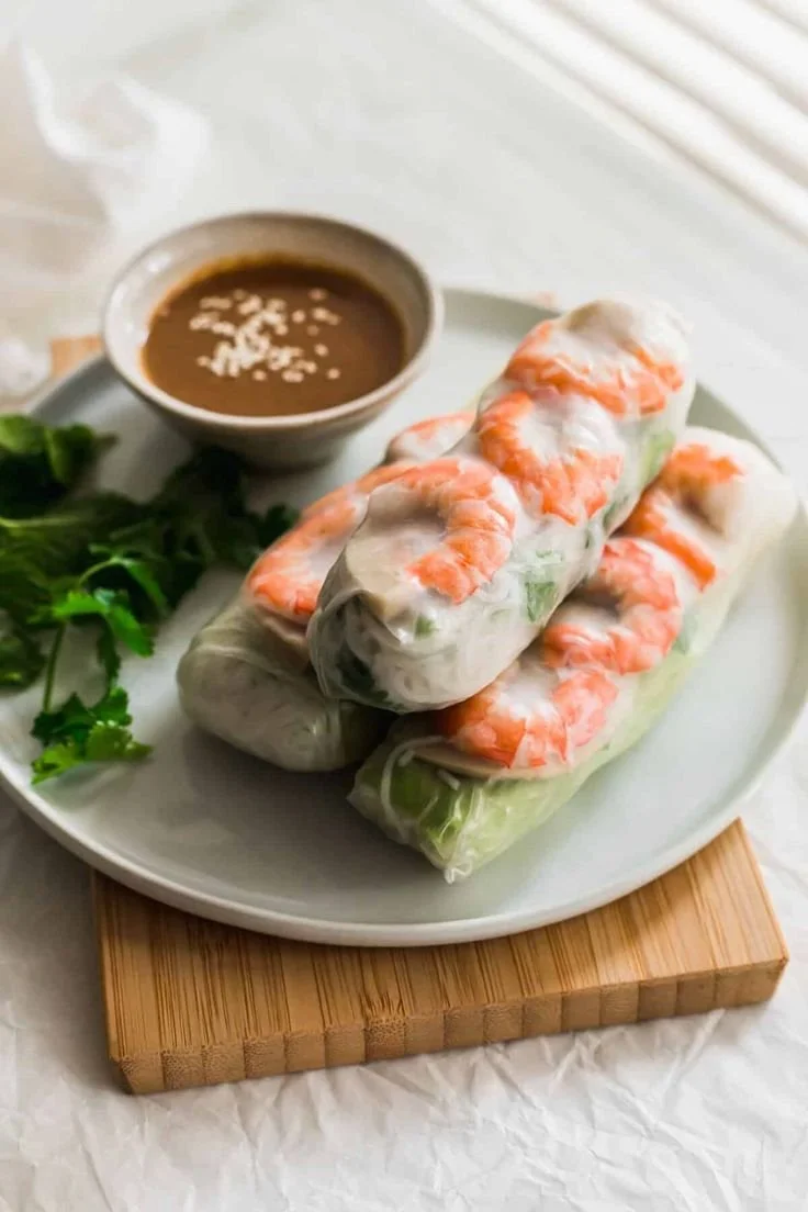 Salad Roll Bites: Fresh rice paper rolls with herbs, shrimp, and vermicelli