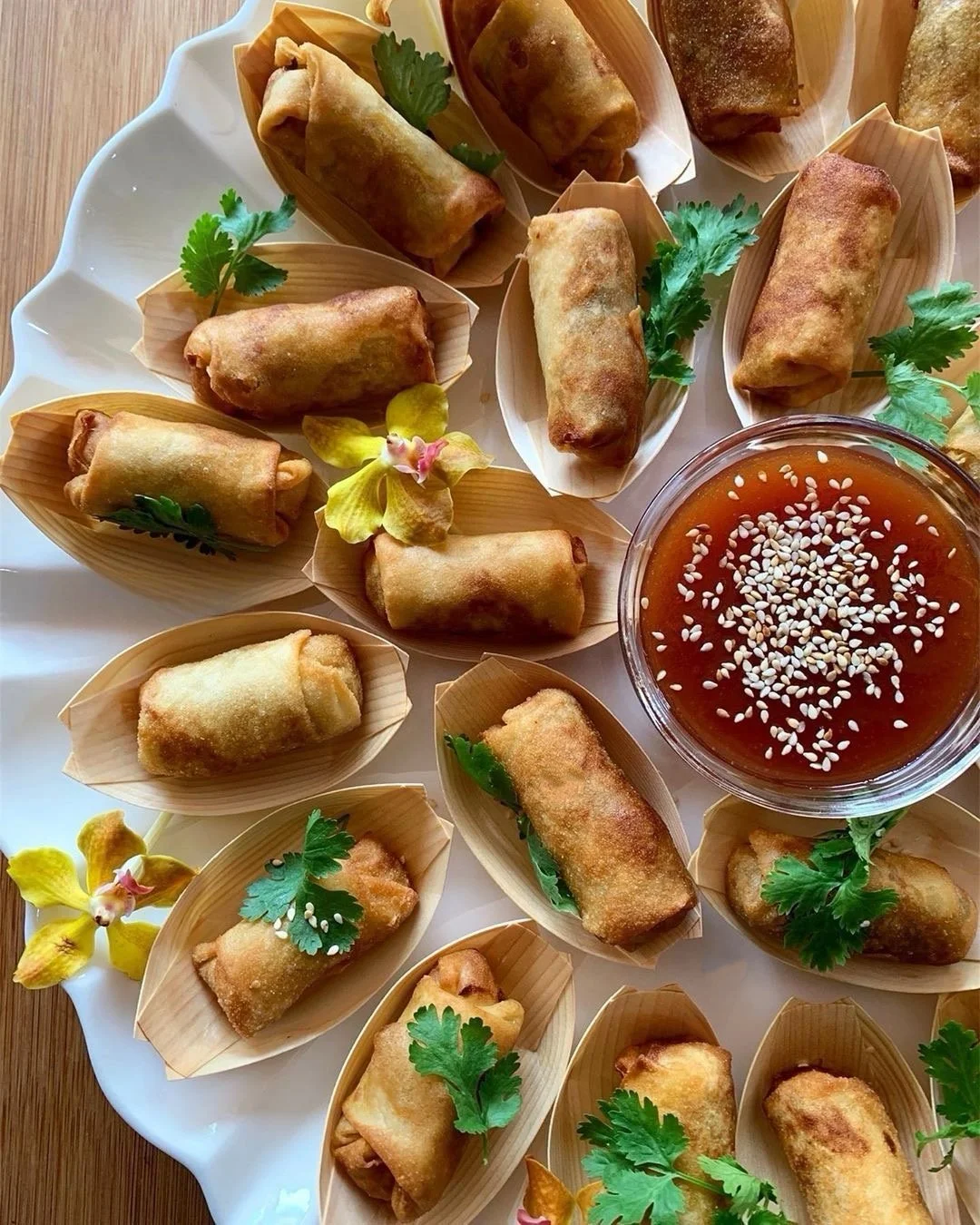 Mini Spring Rolls: Crispy vegetable or shrimp-filled rolls with a tangy sauce